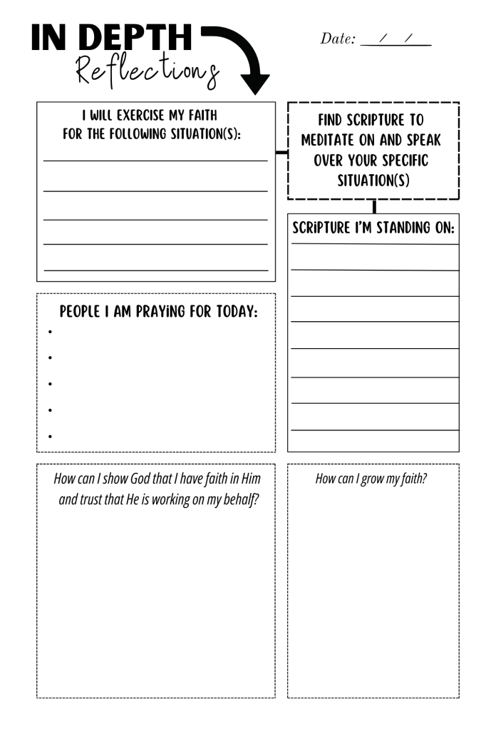 One unique feature of this journal is the “In-Depth Reflections” section. These pages are designed to help you dig deeper into the Bible, inviting you to explore related verses, slow down with intentional reflection, and respond to thoughtful prompts that encourage spiritual growth and action.