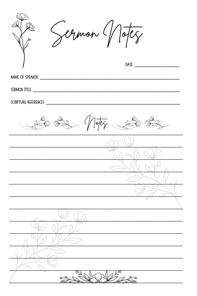 - Sermon note sections